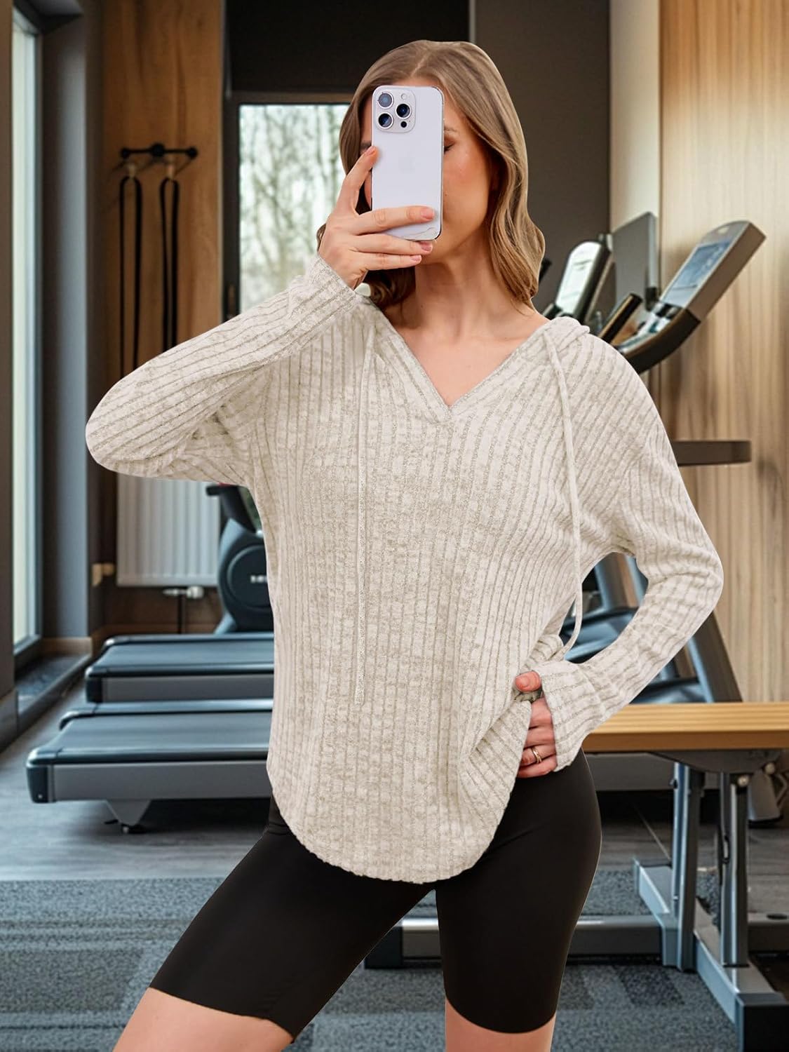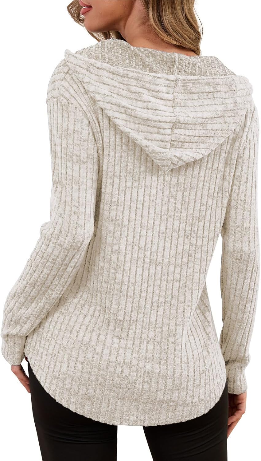 Lylinan Womens Cozy Knit Sweaters Hoodies Ribbed V Neck Pullover Sweatshirts for Fall Outfits S-XXL