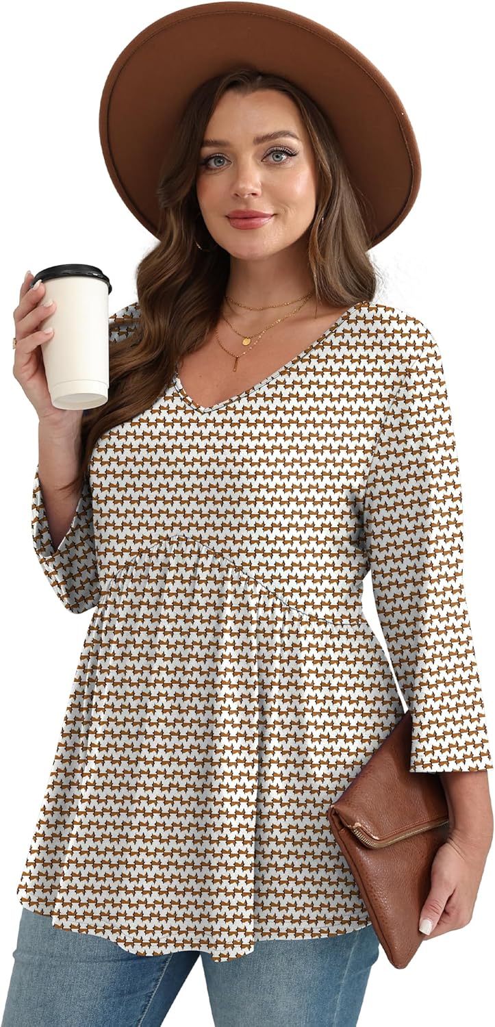 3/4 Length Sleeve Womens Tops 2025 Blouses for Women Dressy Casual Fashion Clothing V Neck Babydoll Tops Fall Outfits