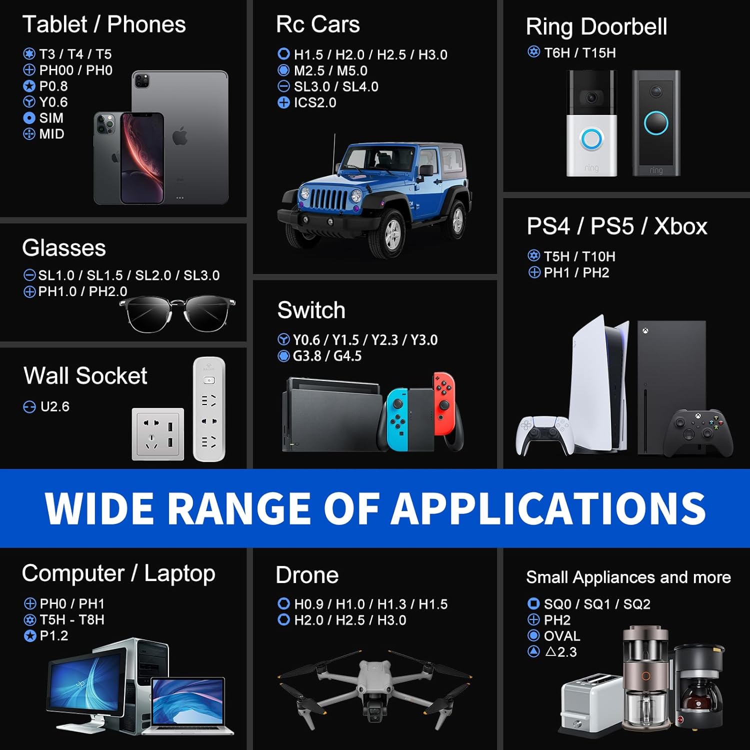 - Device-Specific Types: SIM (for phone SIM trays), MID, OVAL, Gamebit (for vintage game cartridges), Nut drivers.